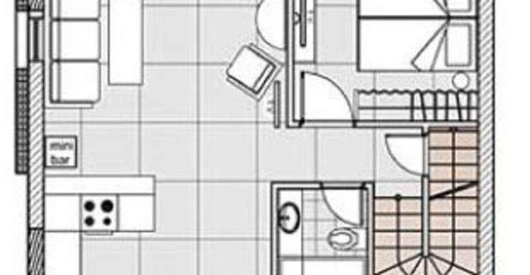 On the second floor there is a master bedroom with a double bed, a sitting corner with large windows and panoramic view, as well as a en-suite bathroom with shower.